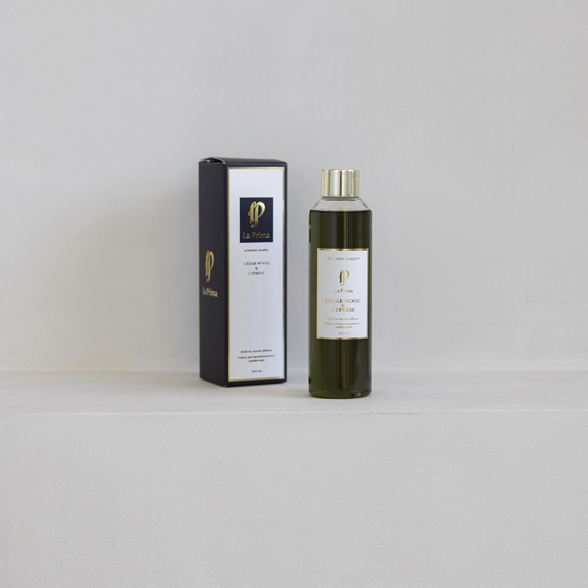 «Cedar wood & cypress» (Кедровое дерево и кипарис) аромат - настроение. Как будто попадаешь в величественный таинственный лес. Пышная хвойная зелень и шумное веселье высоких сводов деревьев. Свежий аромат великолепного кедра подчеркивают богатые ноты сандалового дерева.