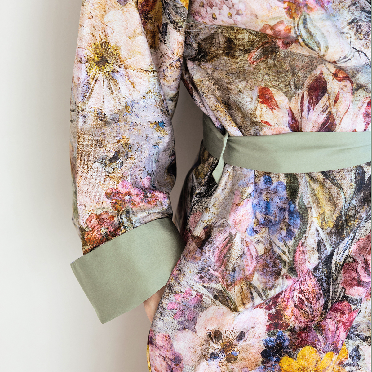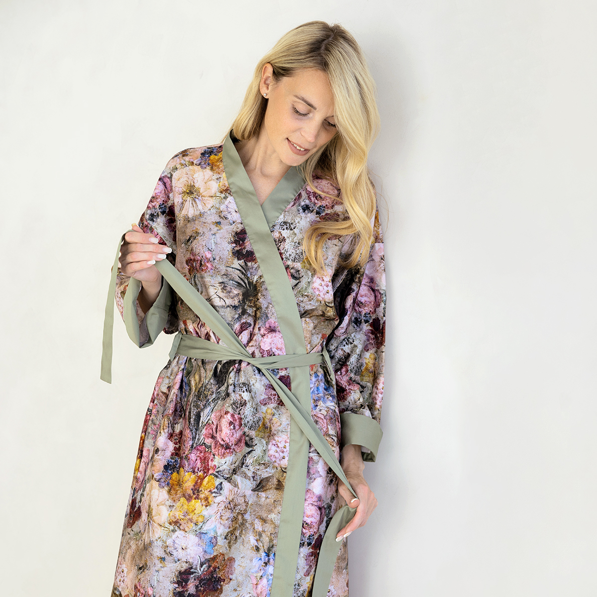• Удобная модель кимоно с поясом и внутренними завязками позволяет чувствовать себя максимально комфортно. А практичные карманы в швах добавляют удобства в каждодневной носке.
