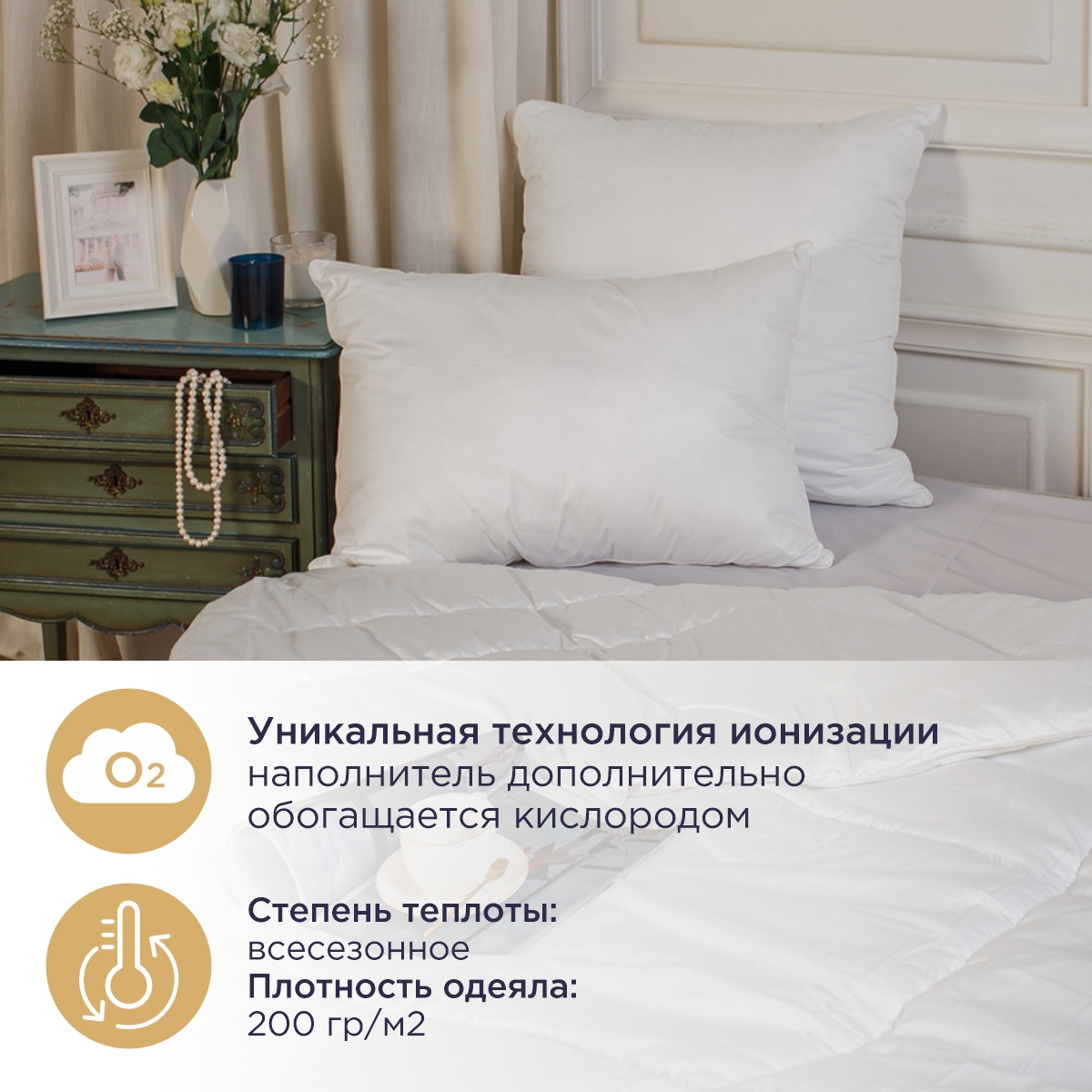 AirBalance - это уникальная технология ионизации, наполнитель дополнительно обогащается кислородом.  Эта технология препятствует комкованию и слеживанию одеяла, оставляя изделие воздушным, упругим и пушистым на весь период эксплуатации.