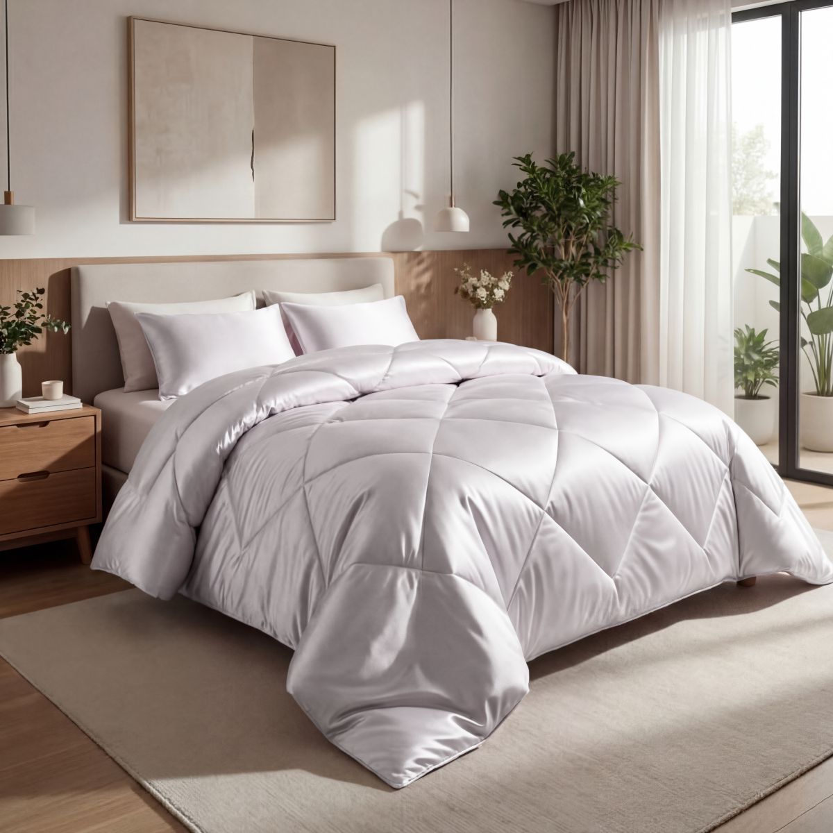 Благодаря объемному наполнителю одеяло обволакивает приятной тяжестью, создавая эффект антистресс-объятий, тем самым помогая полноценно расслабиться и быстрее заснуть.