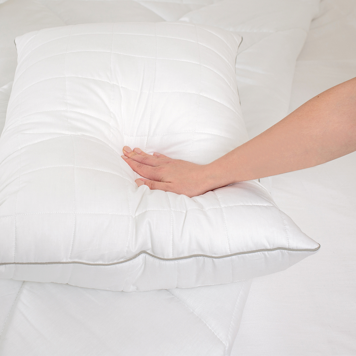 - Оптимальная упругость подушки: удобно спать в любом положении: на боку, на спине, на животе. Разработанное профессиональными технологами соотношение и объем наполнителя в подушке обеспечивает правильное положение головы и шеи во сне – что позволяет расслабиться и быстро заснуть. Подушка 50*70 см и подушка 70х70 см идеально подходит детям!
