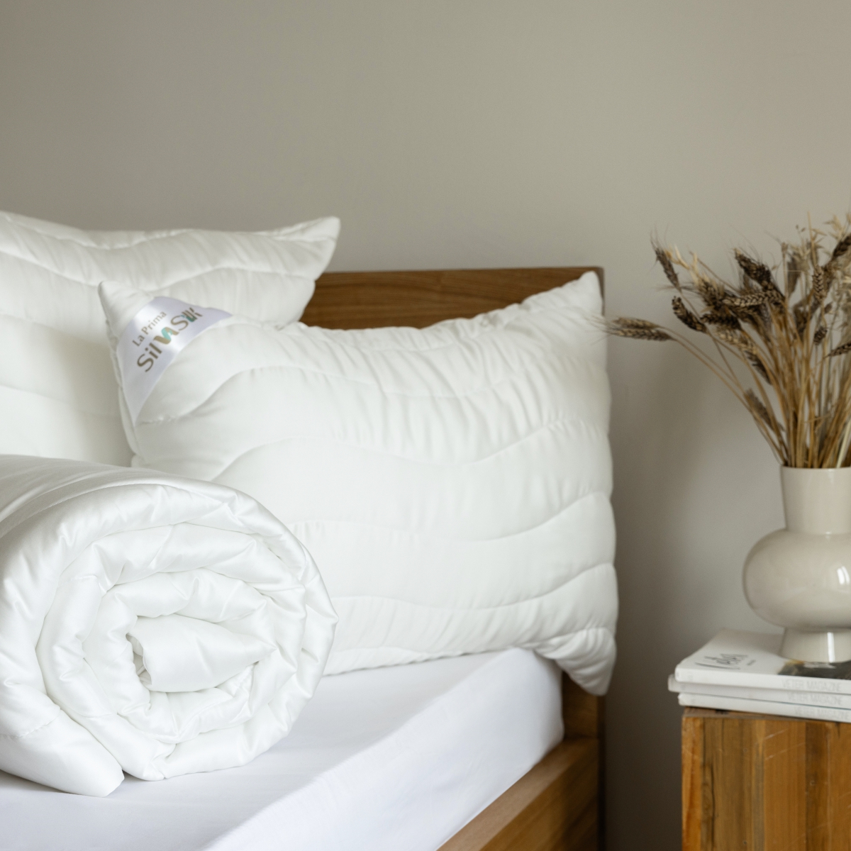 Почувствуйте роскошь заботиться о себе каждую ночь с премиальной подушкой SilvaSilk из уникальной ткани 100% лиоцелл с коллагеном в сочетании с наполнителем из 100% NanoSilk.