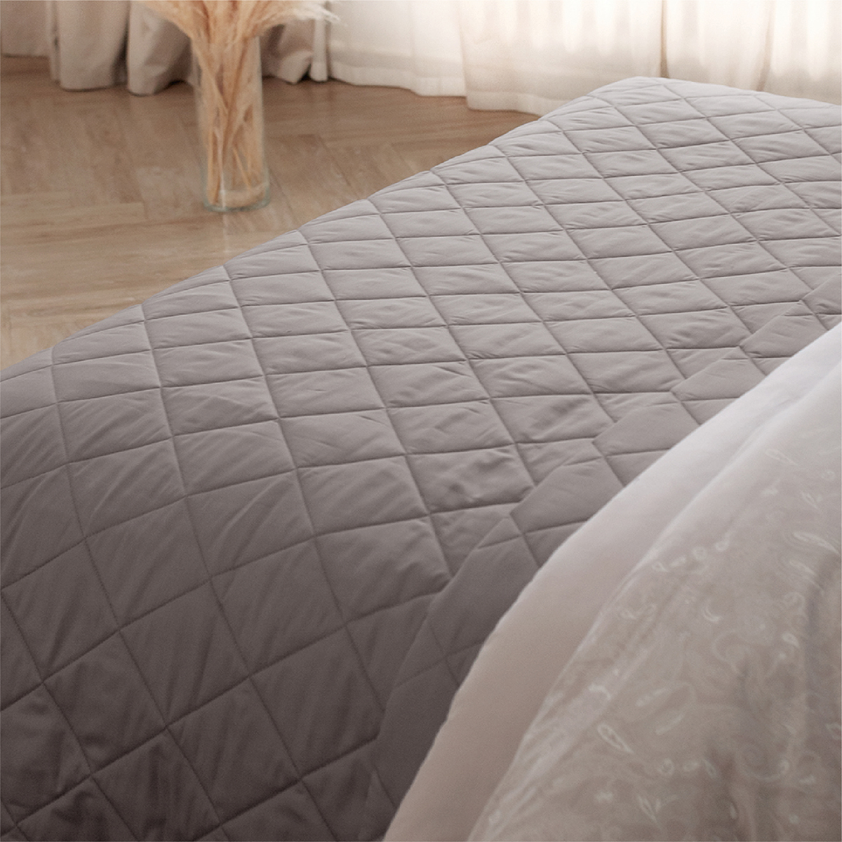 ОСОБЕННОСТЬ модели: хлопковое покрывало на кровать с закругленным уголком, практичной окантовкой по периметру изделия и стильной стежкой в виде ромбов. Верхняя и нижняя часть покрывала выполнены из высококачественного сатина - безопасного и натурального материала.
