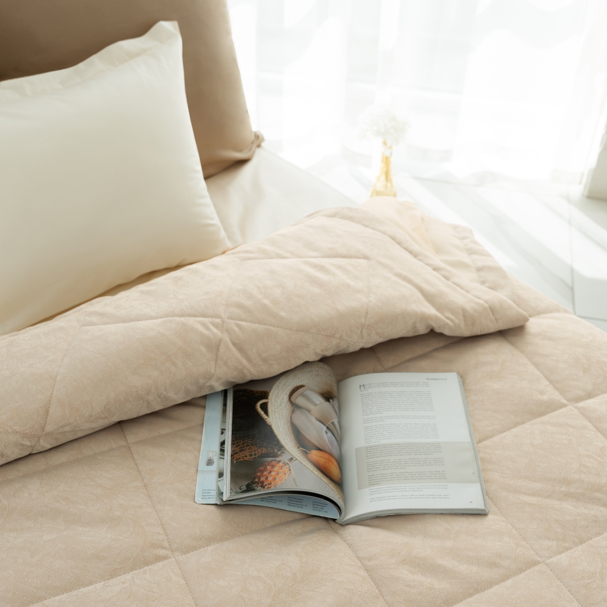 Подклад: микрофибра велюр, за счет своей фактуры он предотвращает скольжение покрывала на кровати.