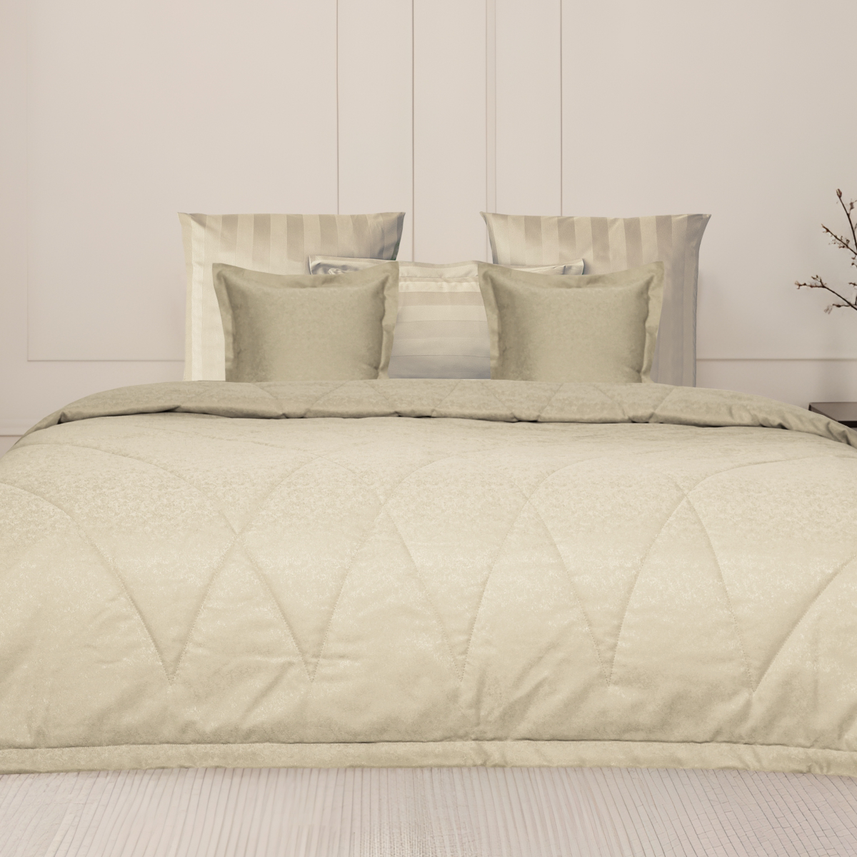 В комплект входит: покрывало стеганое 240х260см и декоративные наволочки на молнии 45х45см.