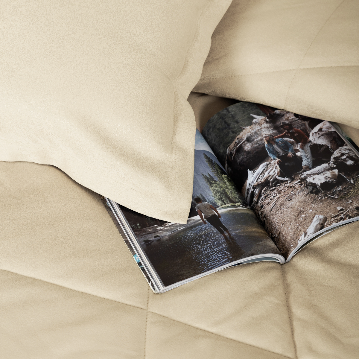 Подклад: микрофибра велюр, за счет своей фактуры он предотвращает скольжение покрывала на кровати