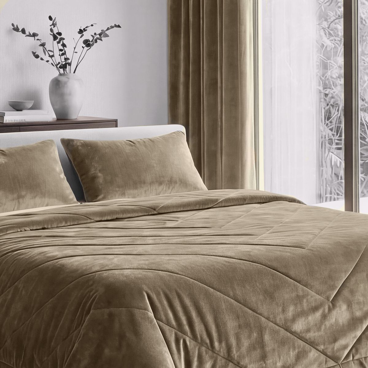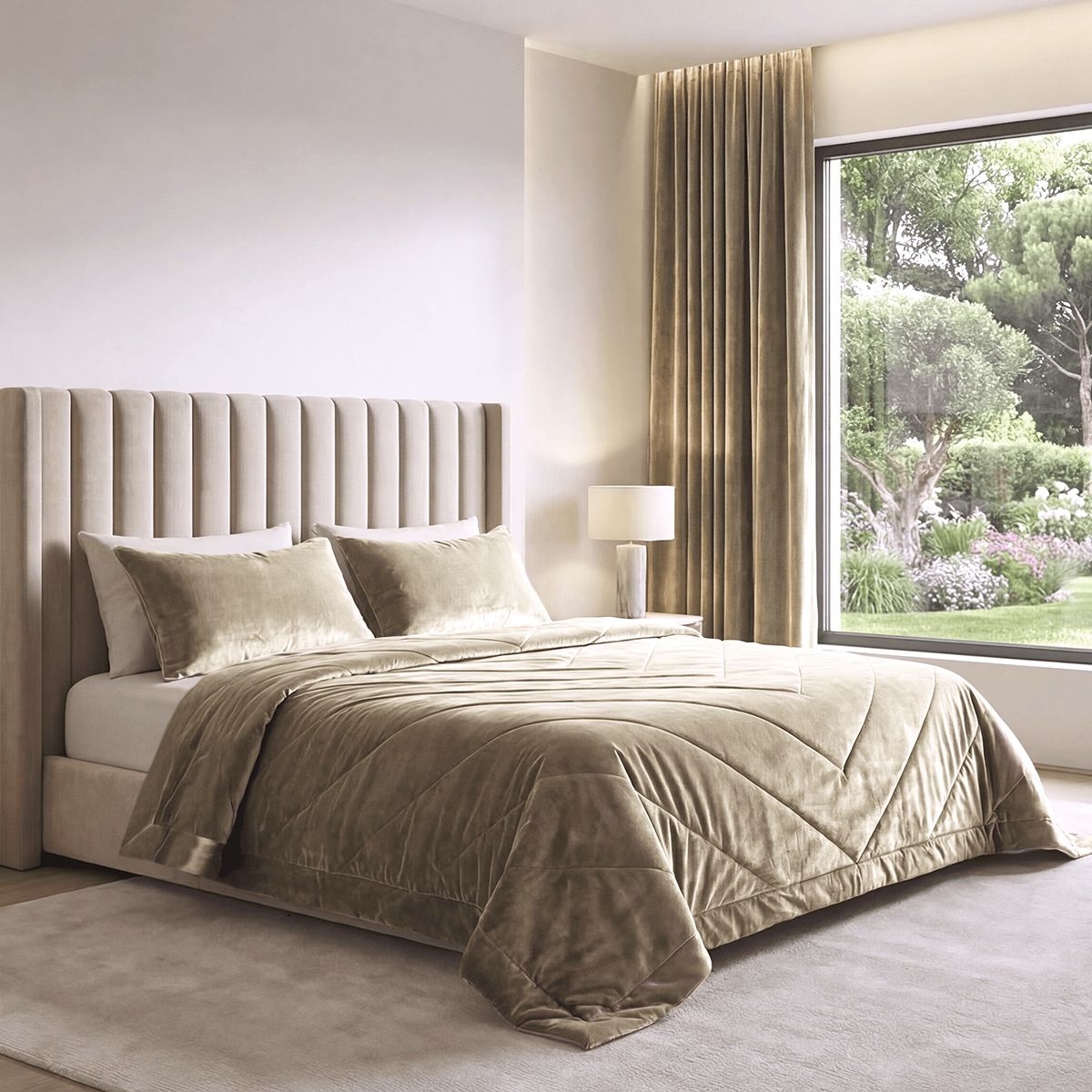 Бежевый - цвет натурального льна, песчаных дюн и ароматного капучино. В бархате La Prima этот оттенок раскрывается особенно благородно: мягко мерцая, он создаёт атмосферу утончённой роскоши и абсолютного уюта. Покрывало дарит интерьеру спокойствие, природную элегантность и визуальный комфорт.