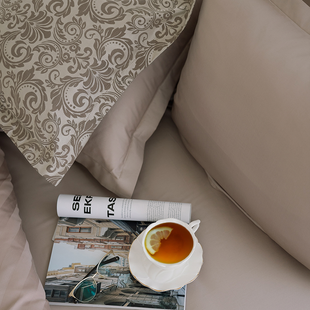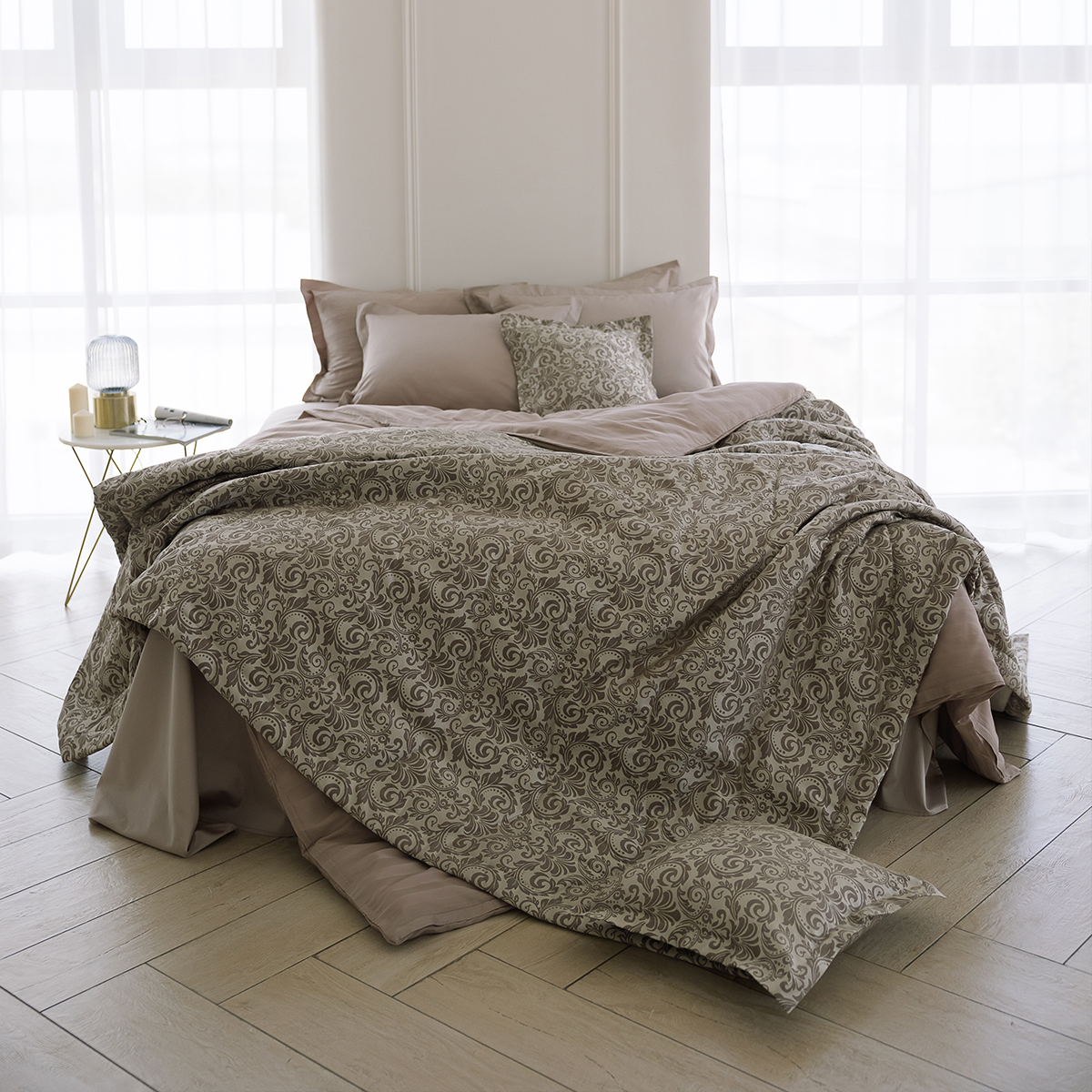 Гладить постельное белье рекомендуем слегка влажным при t° не выше 110 °C.