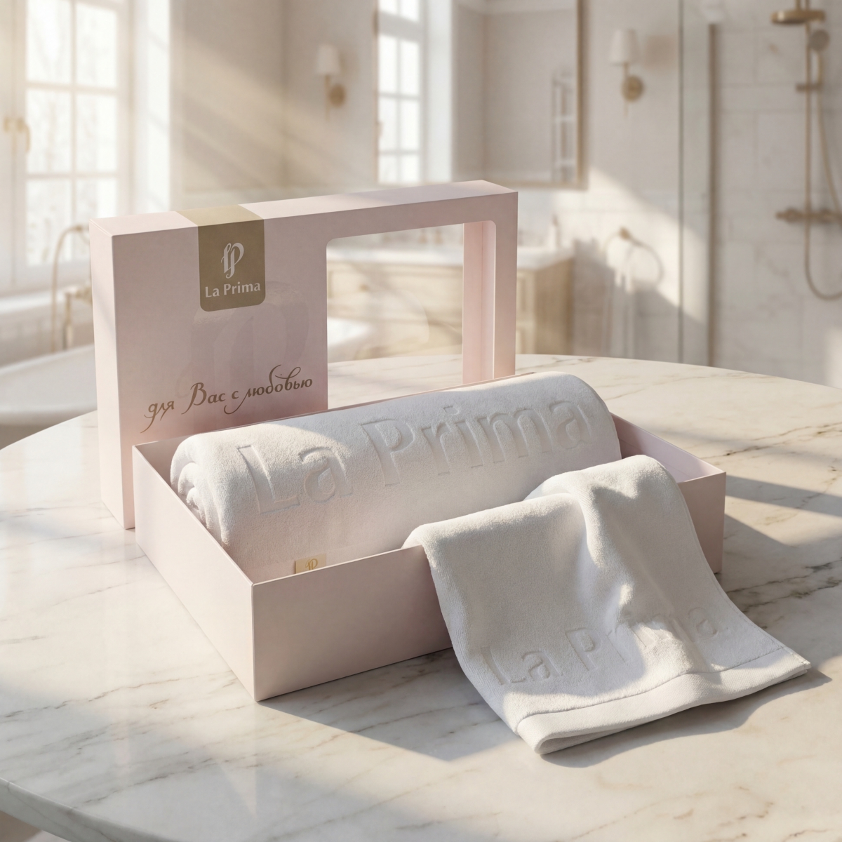 Стильная и деликатная выстрижка логотипа. Наши полотенца украшает элегантное и ненавязчивое лого La Prima — знак отличия для тех, кто ценит детали.