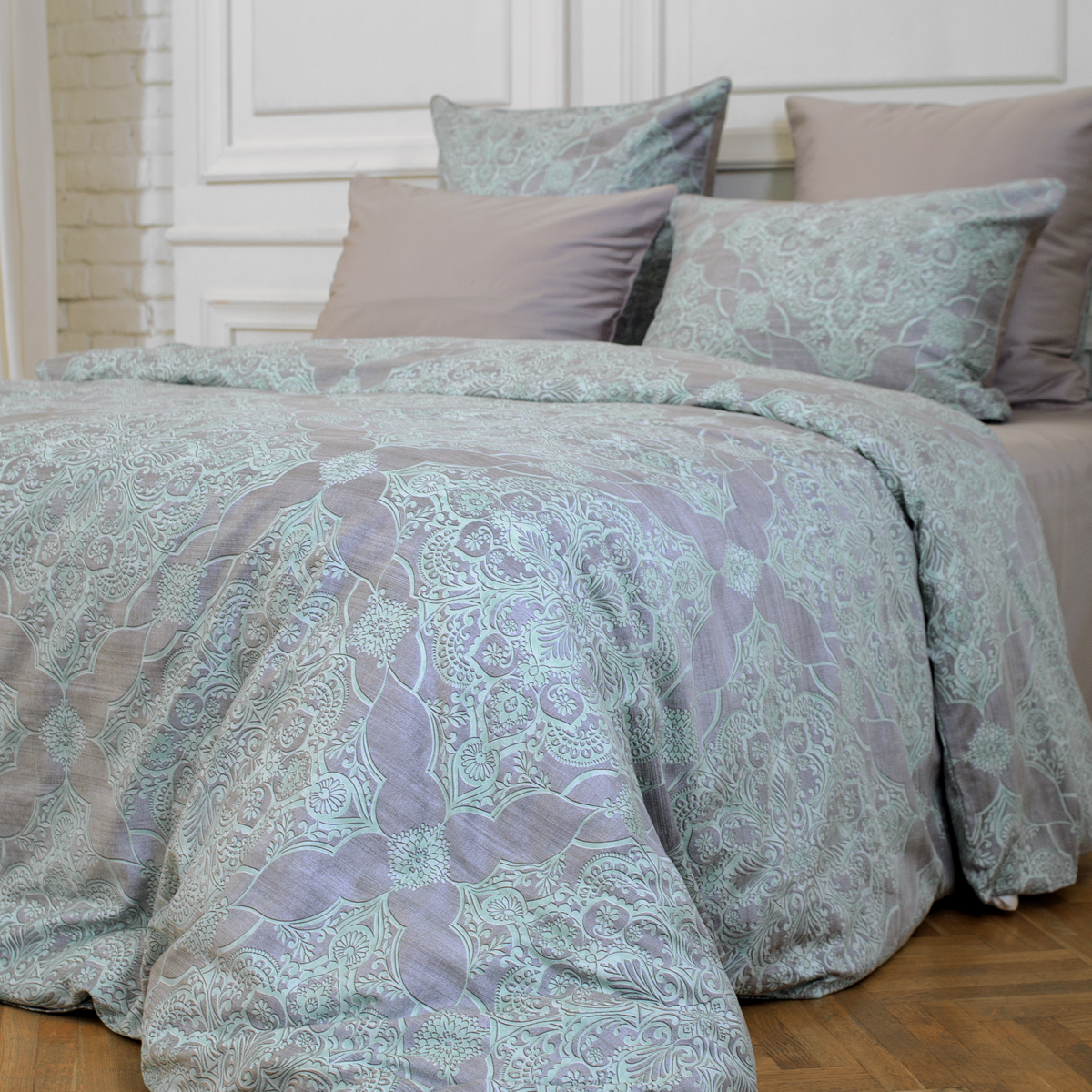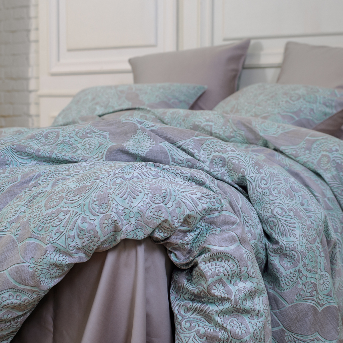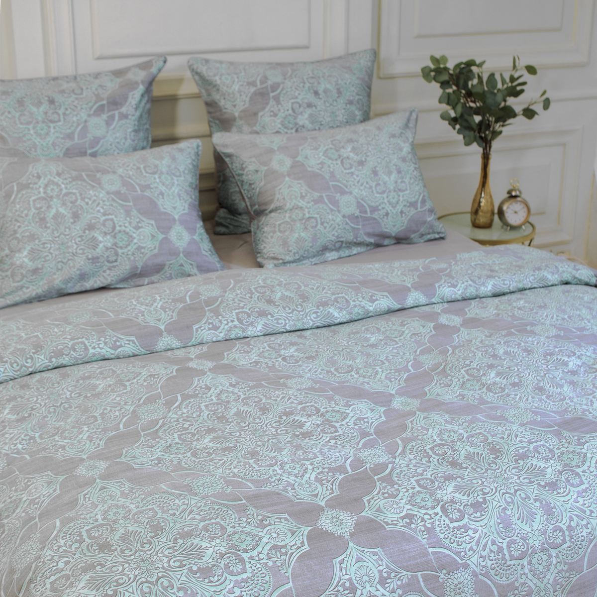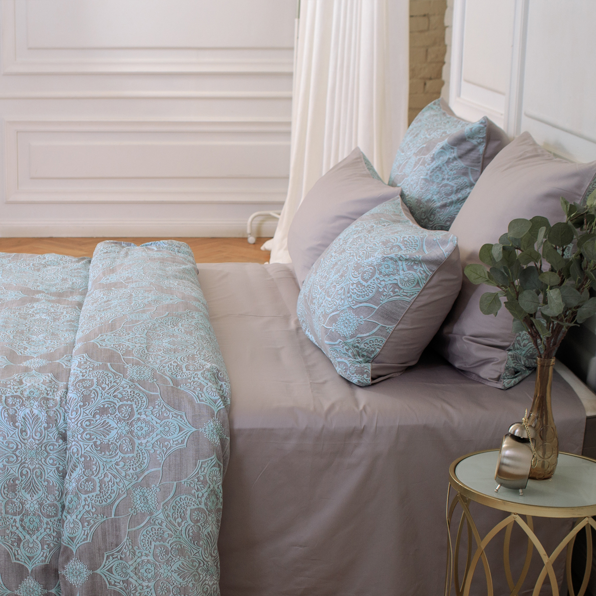 Изящность, утонченность, стиль. Ажурное кружево, сотканное из невесомых серебристых линий, в сочетании с бирюзовыми нотками, окутывает нежными объятиями и переносит в прекрасное царство Морфея.