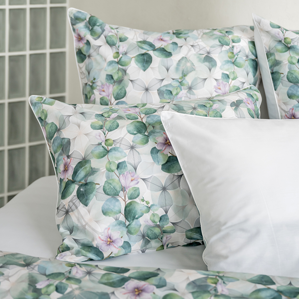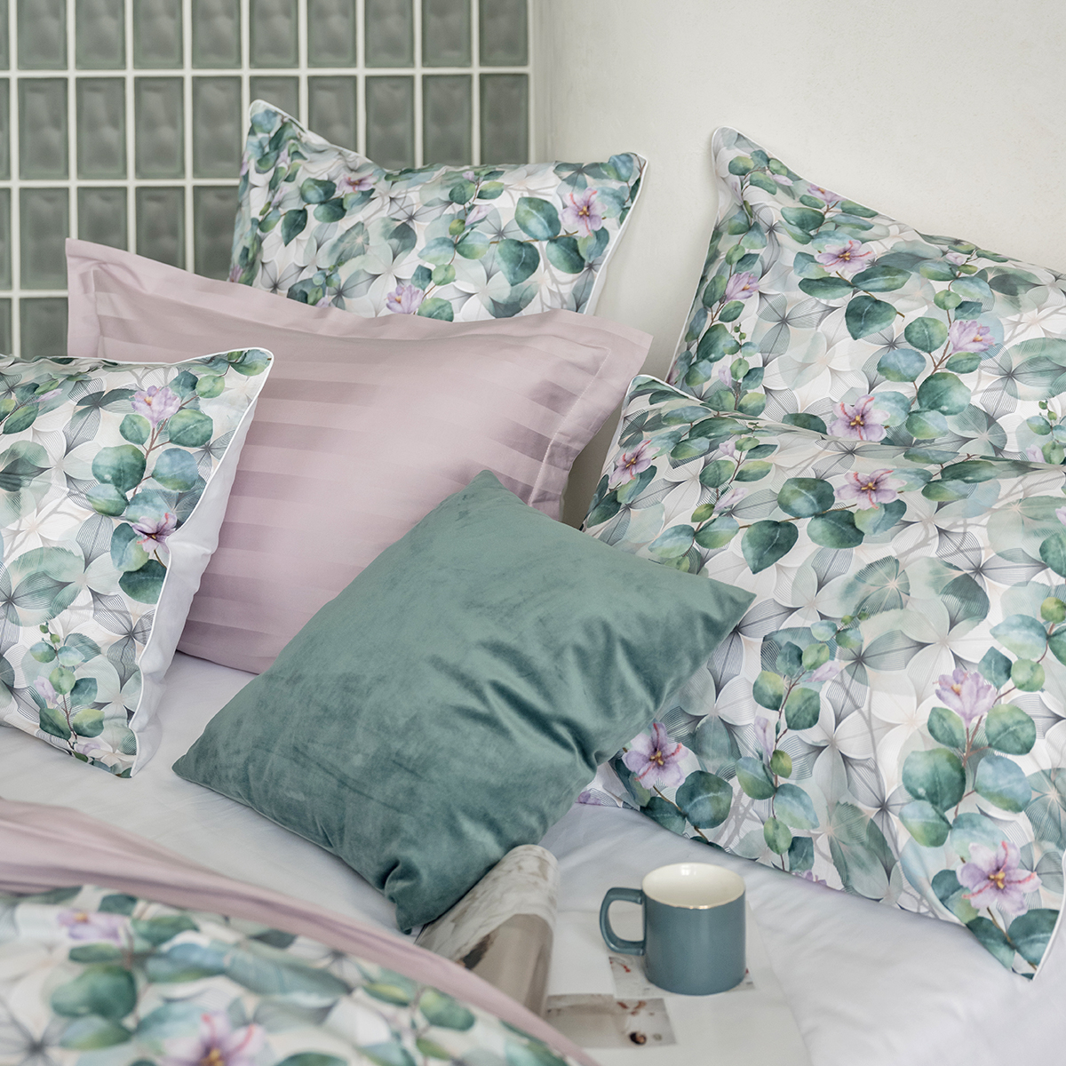 • Наволочки двухсторонние: лицевая сторона– принт, оборотная – однотонная. Декоративный кант по трем сторонам наволочки.