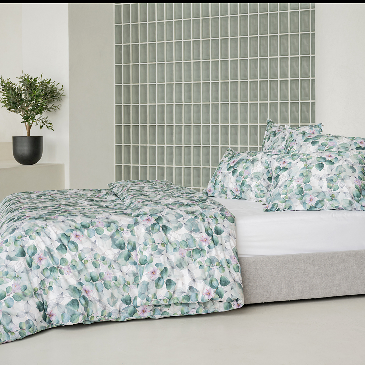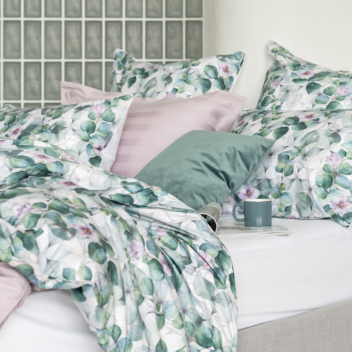 Эта ткань не требует специального ухода – легко стирается и гладится. Пропускает воздух, поддерживает комфортную температуру тела, когда вы спите. Гипоаллергенно.