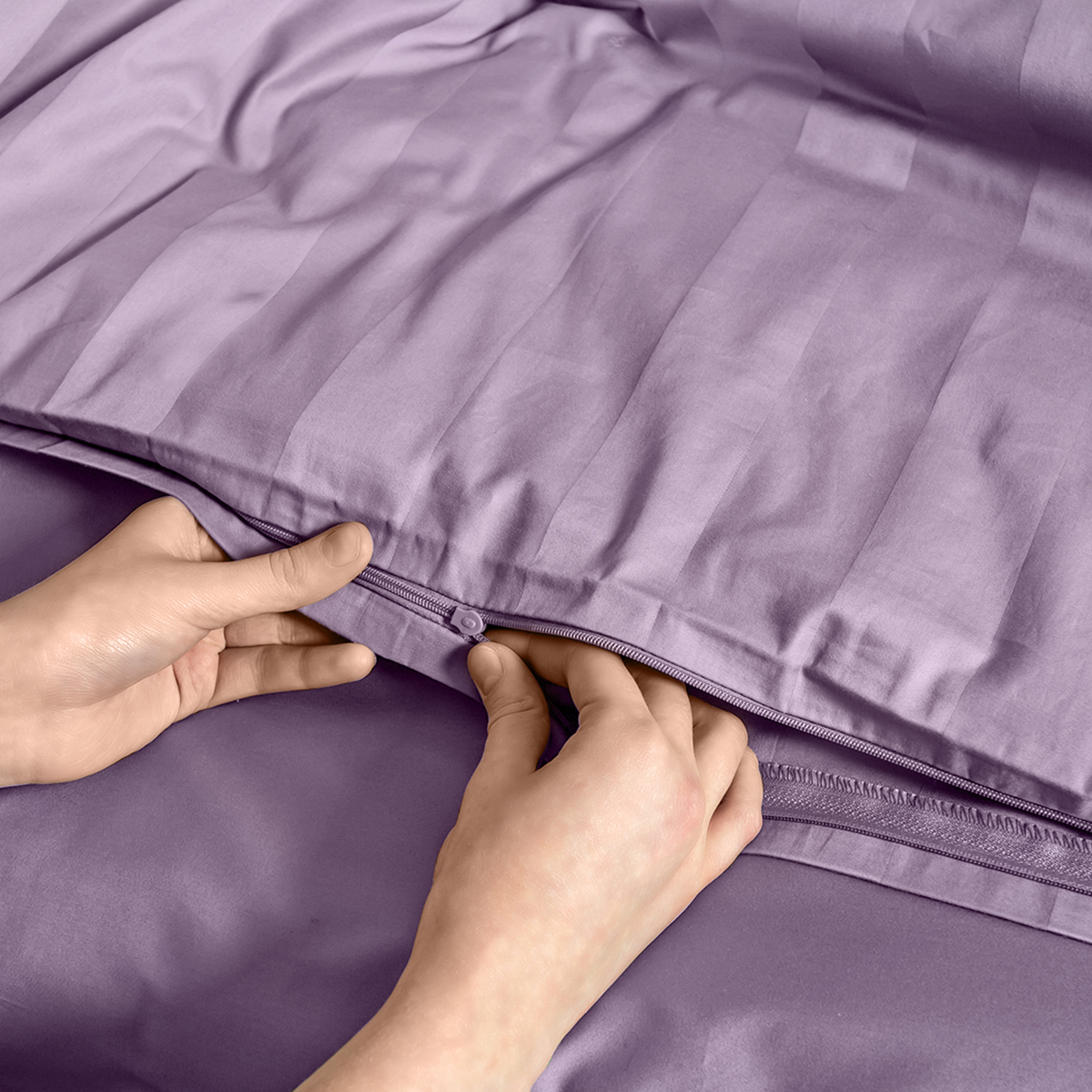 • «Невидимая» молния во всю ширину по нижнему краю пододеяльника. Для быстрой и удобной смены постельного белья в верхней части пододеяльника расположены клапаны для рук. Сменить пододеяльник можно за 30 секунд.