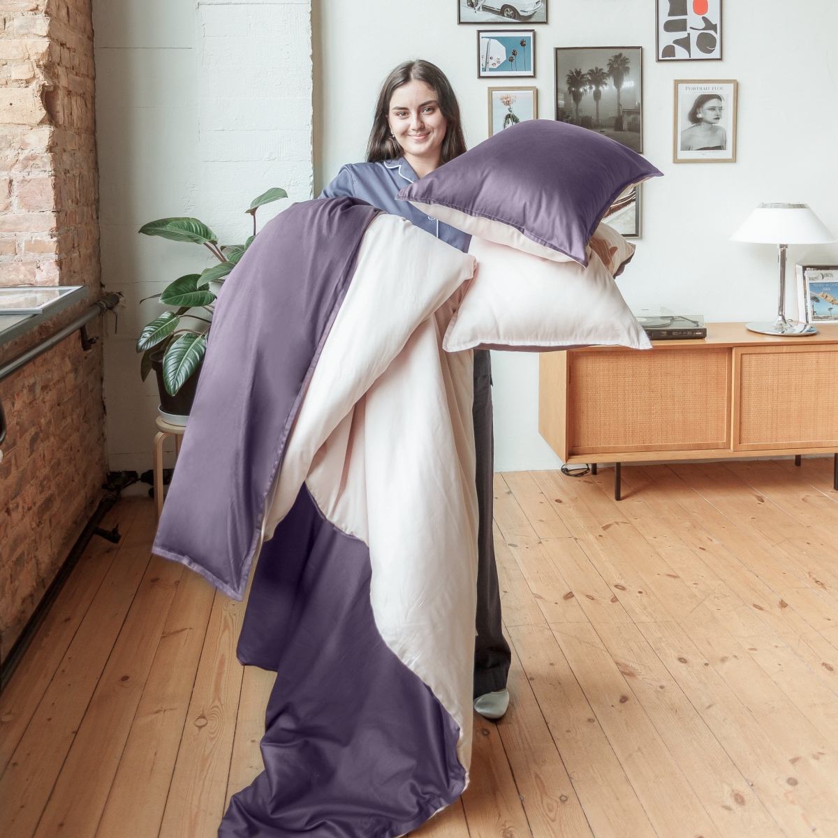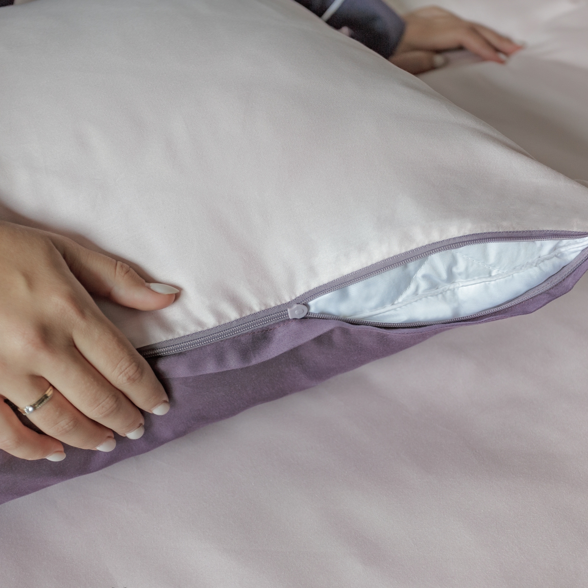 Детали: Двусторонняя наволочка размером 50х70см на молнии. Двусторонний пододеяльник на молнии