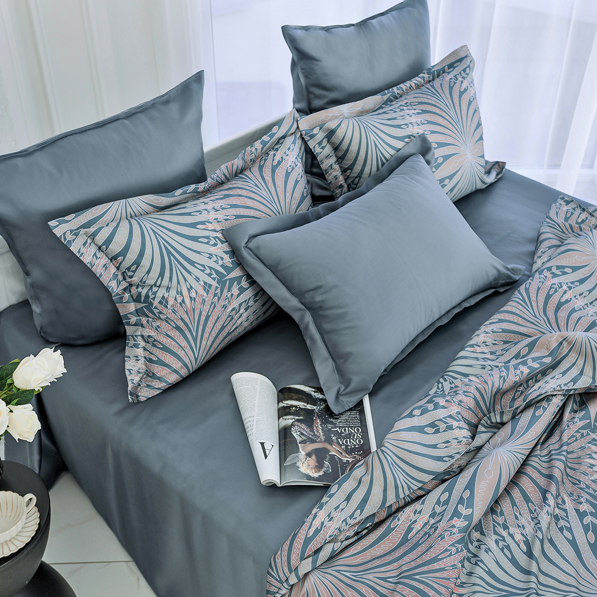 Купила постельное белье глубокого синего цвета и светло-серое покрывало. Всё отличного качества: ткань, пошив, упаковка. Большое спасибо