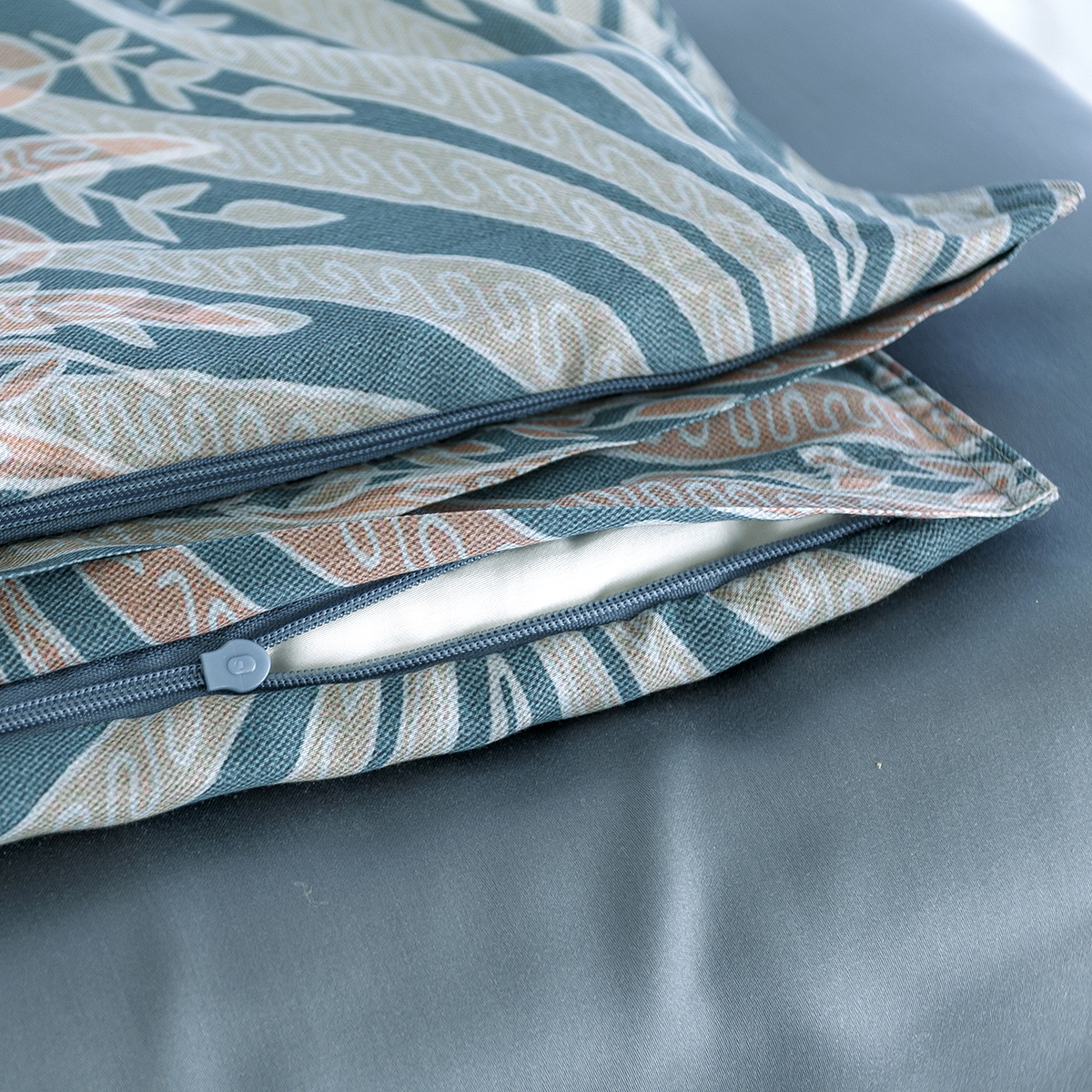 • 4 наволочки в комплекте:50х70см - декоративные ушки 4 см с двойной отделочной отсрочкой по трем сторонам наволочки. «Невидимая» молния по широкой стороне наволочки. 70х70см - двойная отделочная отстрочка по трем сторонам наволочки. «Невидимая» молния по нижнему краю наволочки.