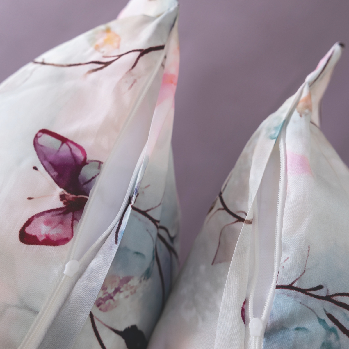 Детали: Наволочки на молнии с декоративными ушками по 3-м сторонам и кантом. Пододеяльник на молнии