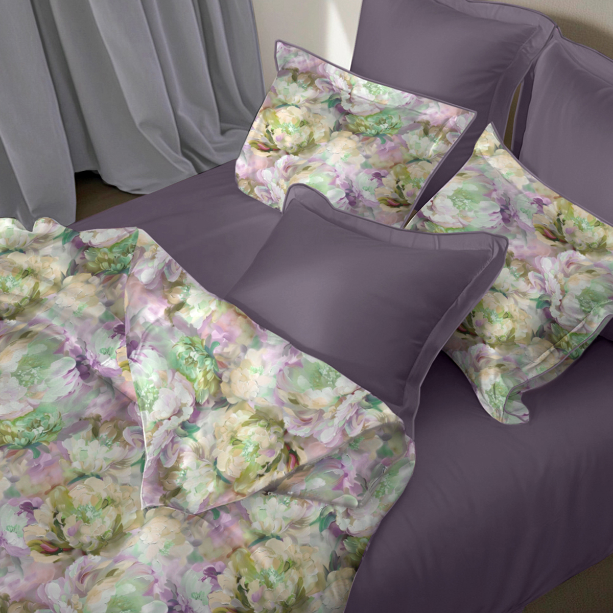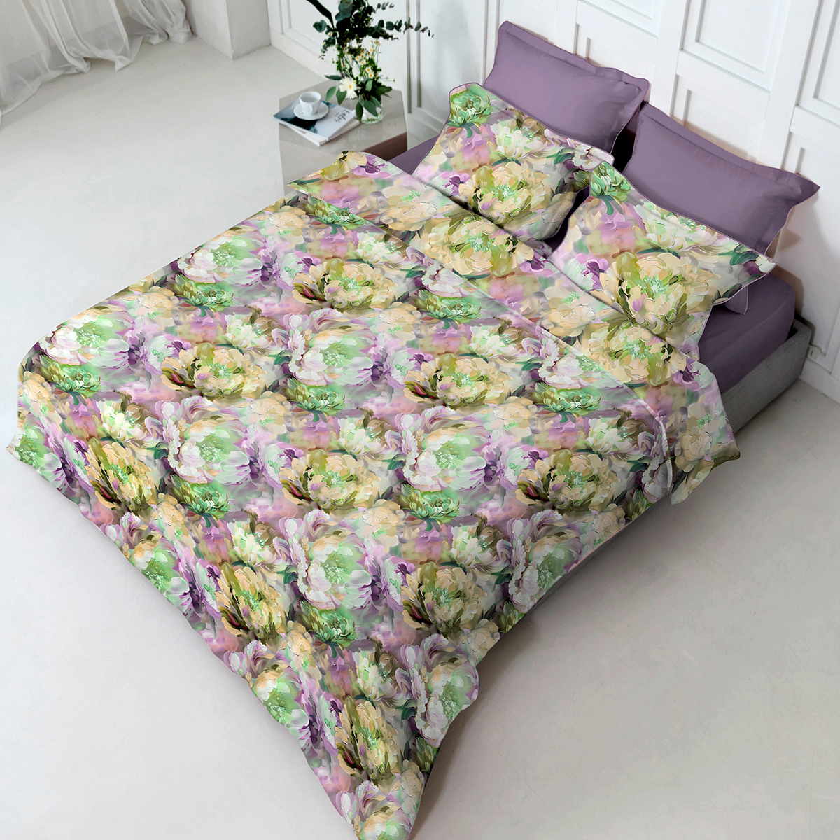 Серена. Это постельное бельё — словно холст, оживший под густыми мазками масляной живописи. Каждый цветок здесь — сочный, фактурный, кажется, стоит протянуть руку — и пальцы коснутся шероховатости краски, уловят аромат цветов. Этот дизайн наполняет спальню энергией, страстью и щедростью природы, превращая сон в погружение в пышный, яркий мир, где даже воздух пропитан цветочным нектаром.