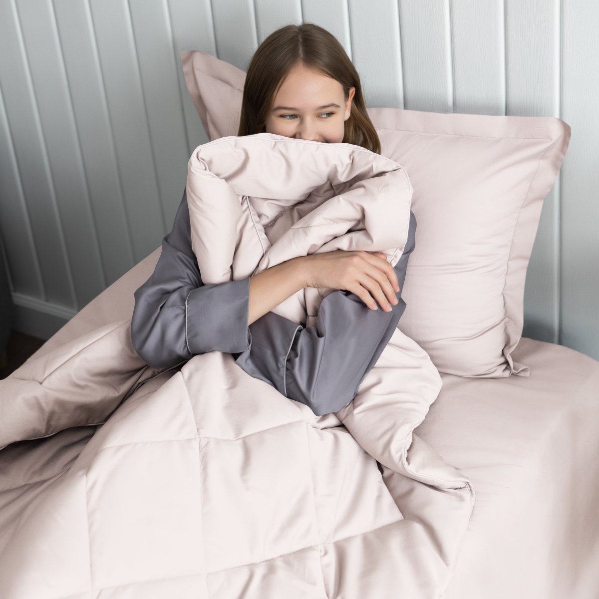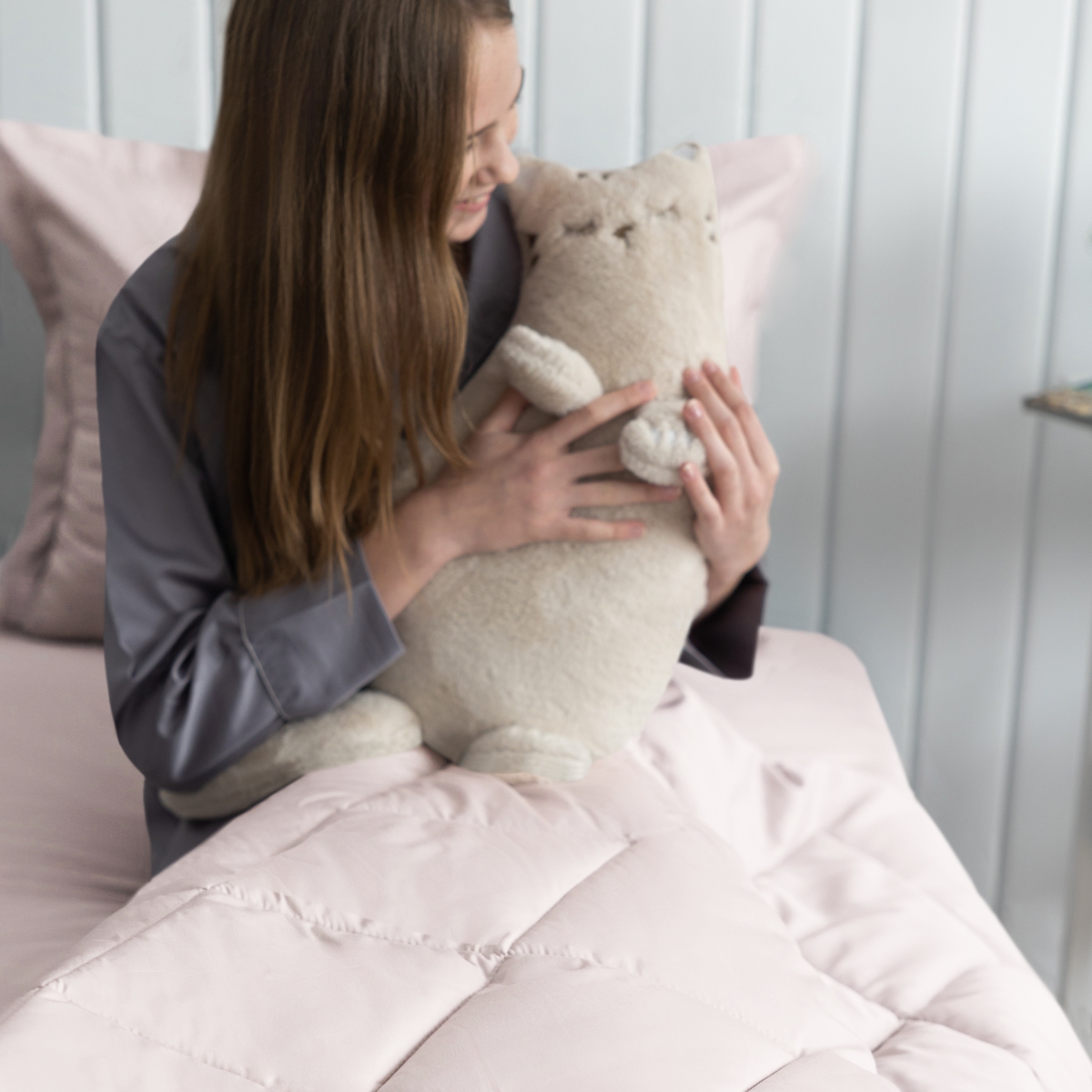 За постельным бельем с одеялом легко ухаживать, его можно стирать в стиральной машине, оно выдерживает до 500 стирок.