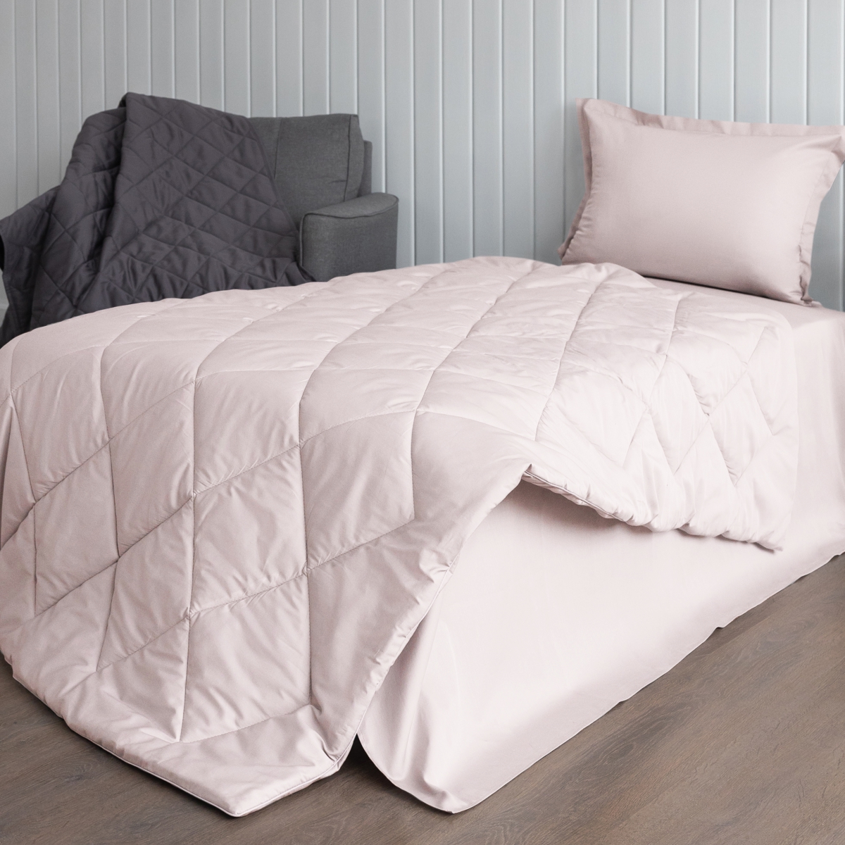 - Стеганое одеяло 140х205см. Одеяло всесезонное, плотность 200гр, что позволяет пользоваться им круглый год. Наполнитель у одеяла: гипоаллергенное 3D микроволокно, не сбивается после стирок.