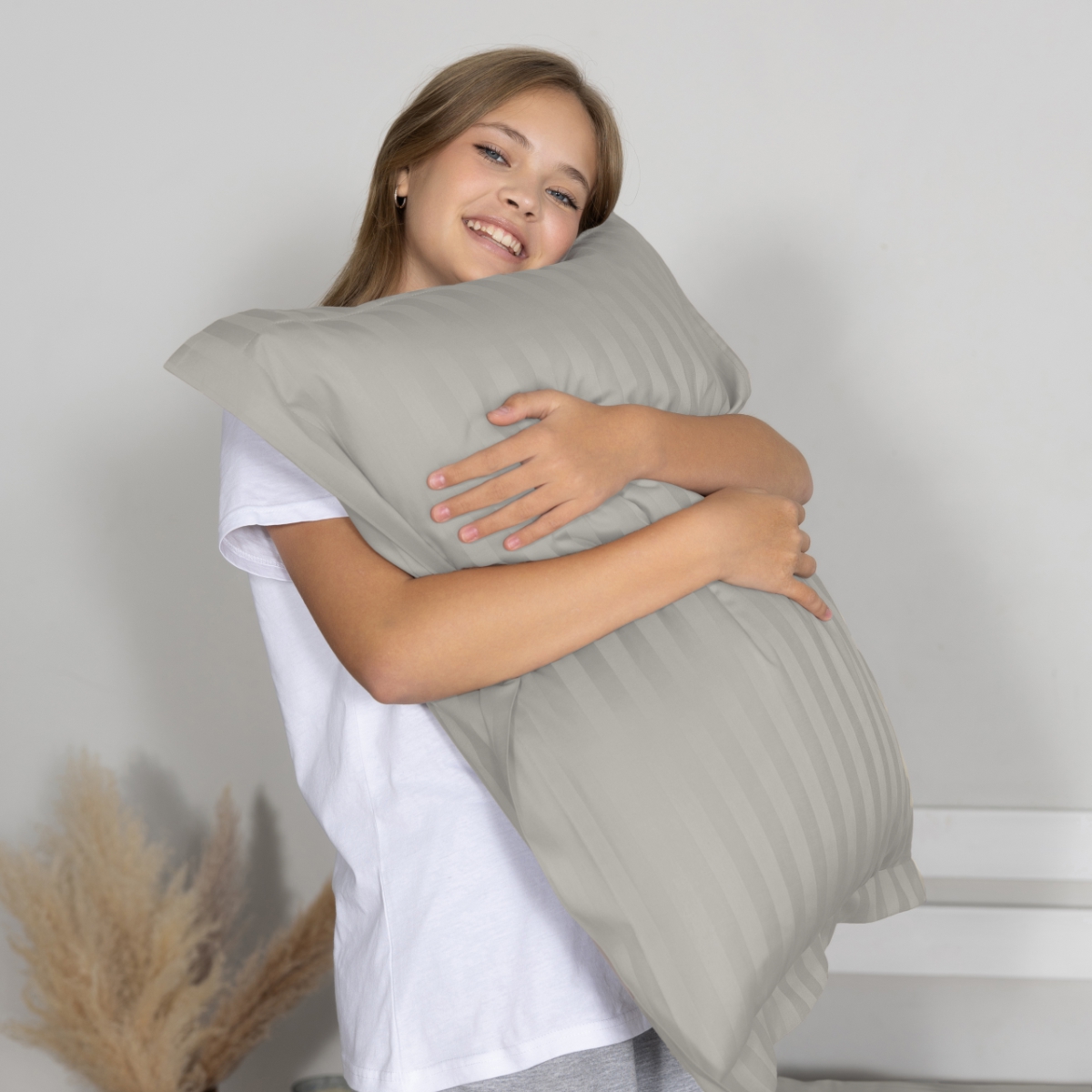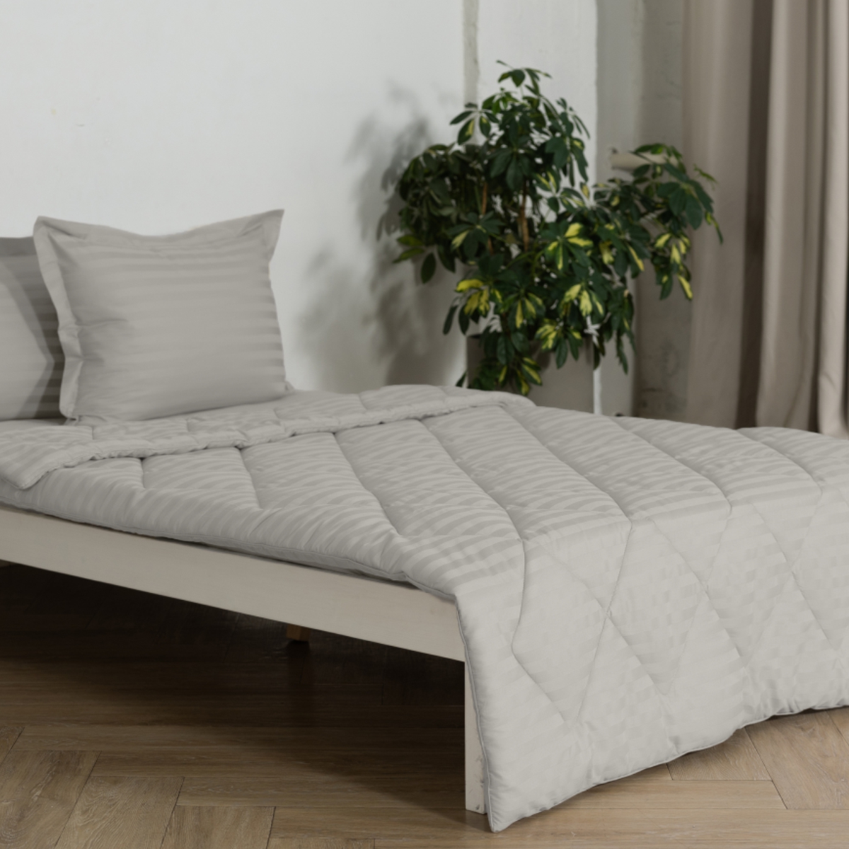 Постельное бельё Cатин | ПОСТЕЛЬНОЕ БЕЛЬЁ СТРАЙП-САТИН С ОДЕЯЛОМ 2 НАВОЛОЧКИ ДЫМЧАТЫЙ