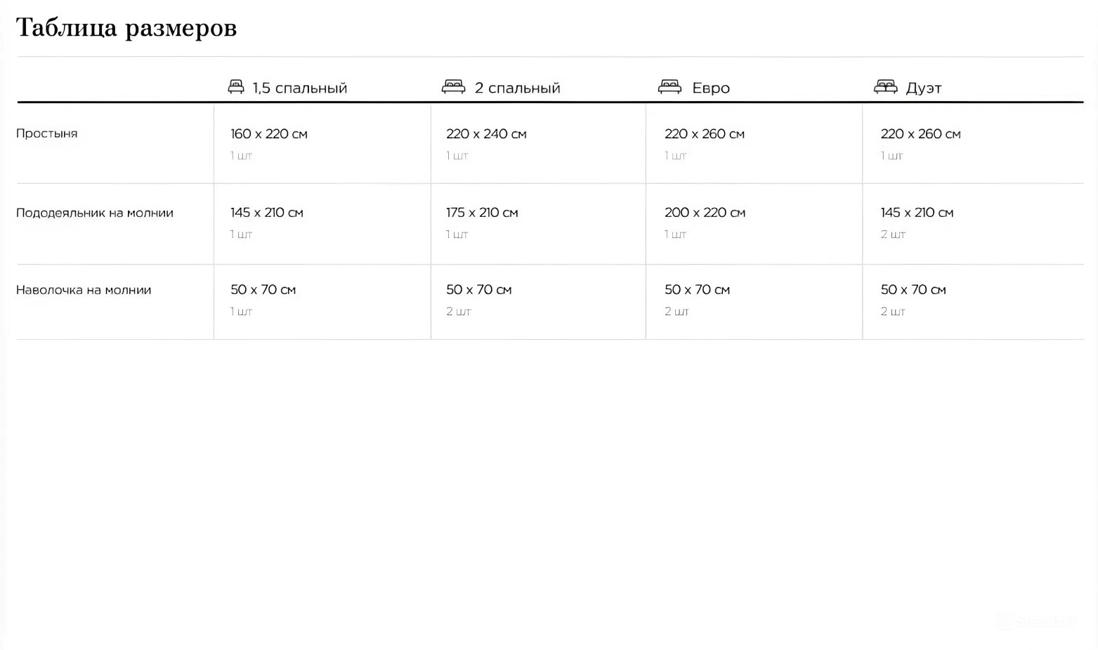 •     Простыня 240х260 см в размерах постельного белья Евро и Семейном.