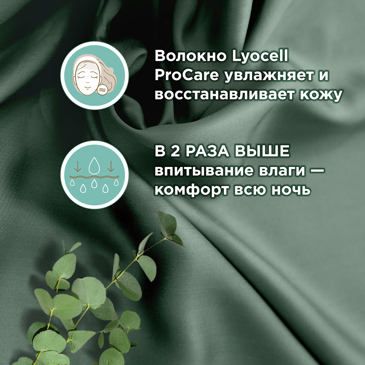 Уникальное волокно Lyocell ProCare обеспечивает восстановление водного баланса дермы. Отмечается увлажнение, смягчение и регенерация кожи. Кроме того, показатель впитывания влаги в 2 раза выше, чем у других тканей – гарантия комфорта на протяжении ночи.