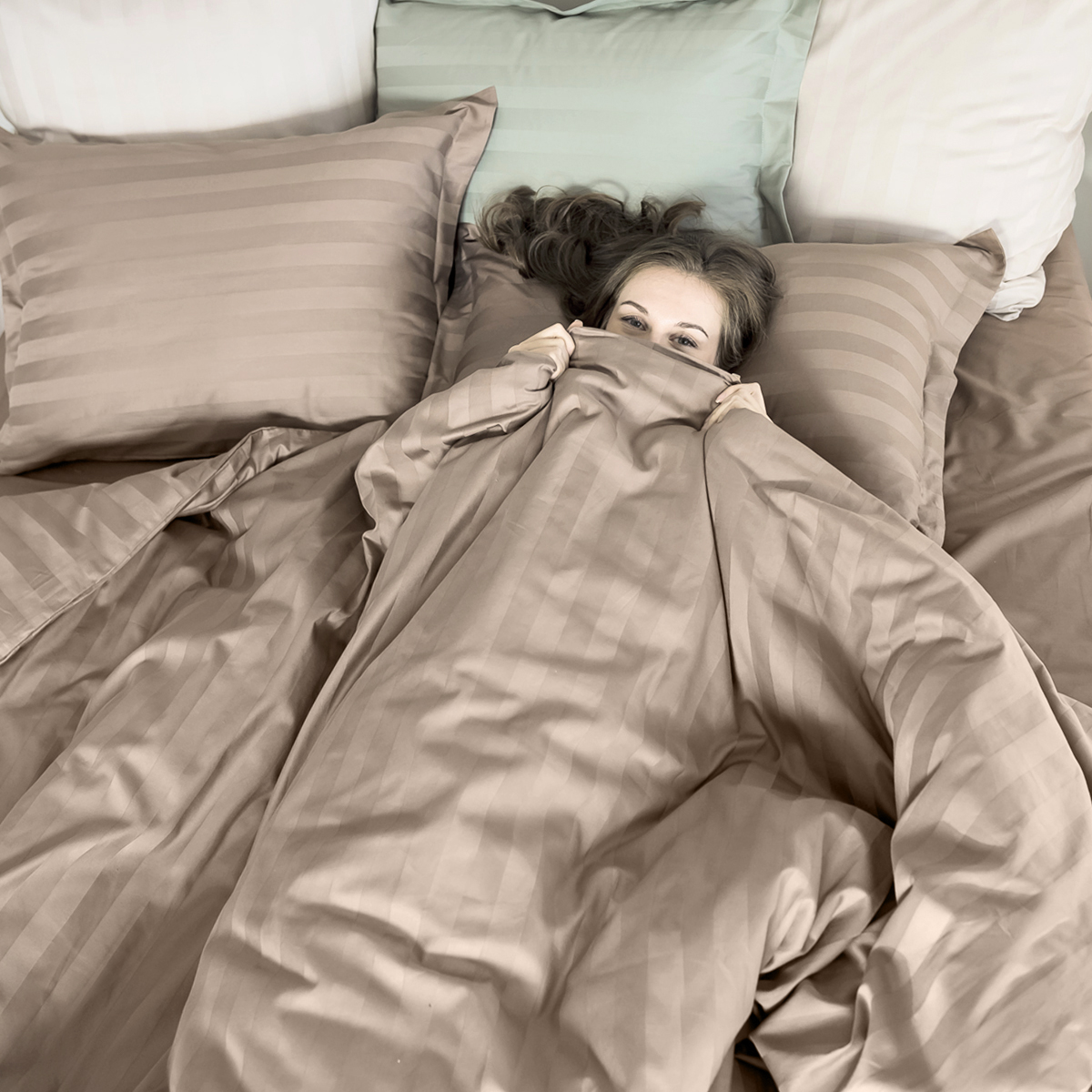 Однотонный стильный пододеяльник произведен из ткани страйп-сатин – 100% хлопок с жаккардовым рисунком в виде полос 3х3