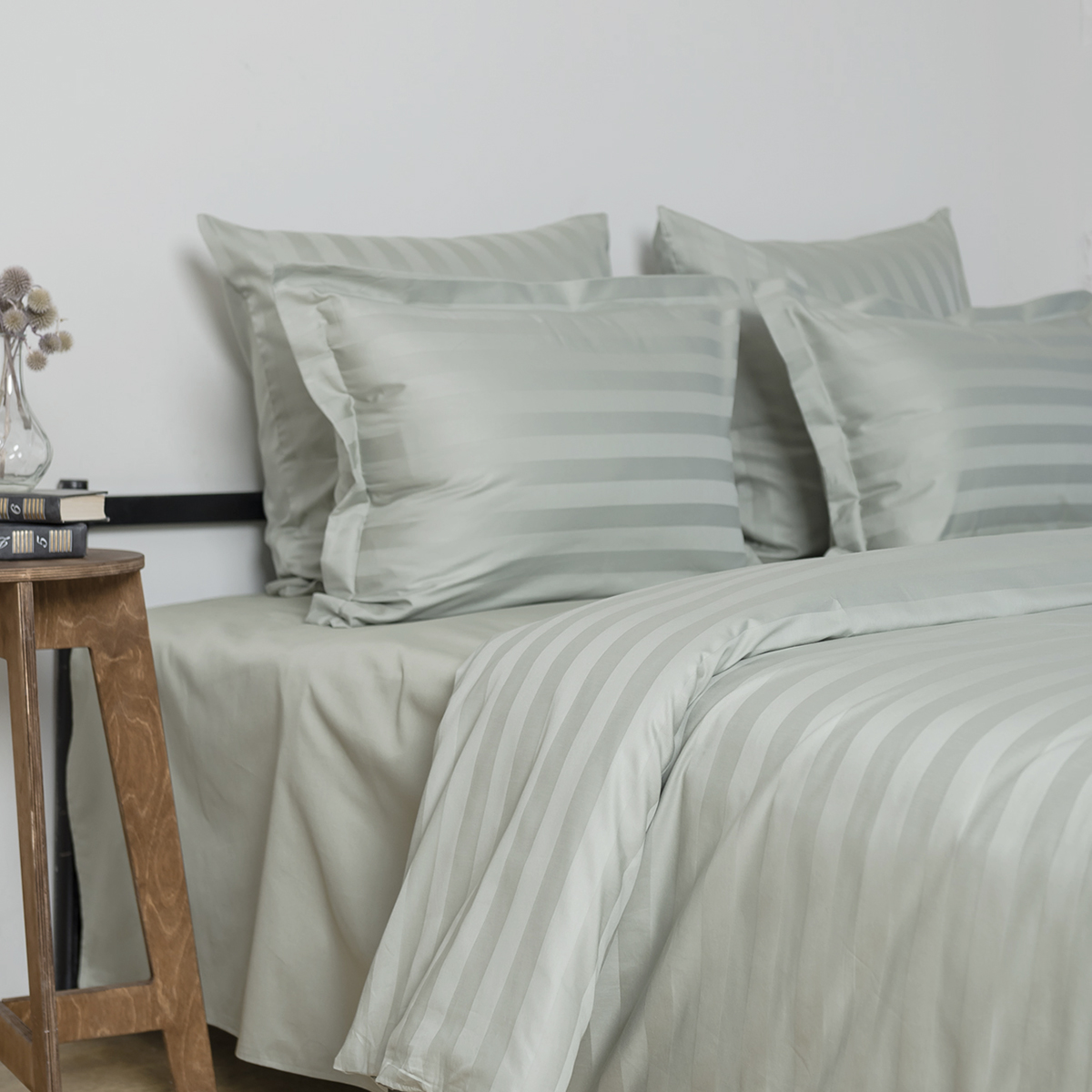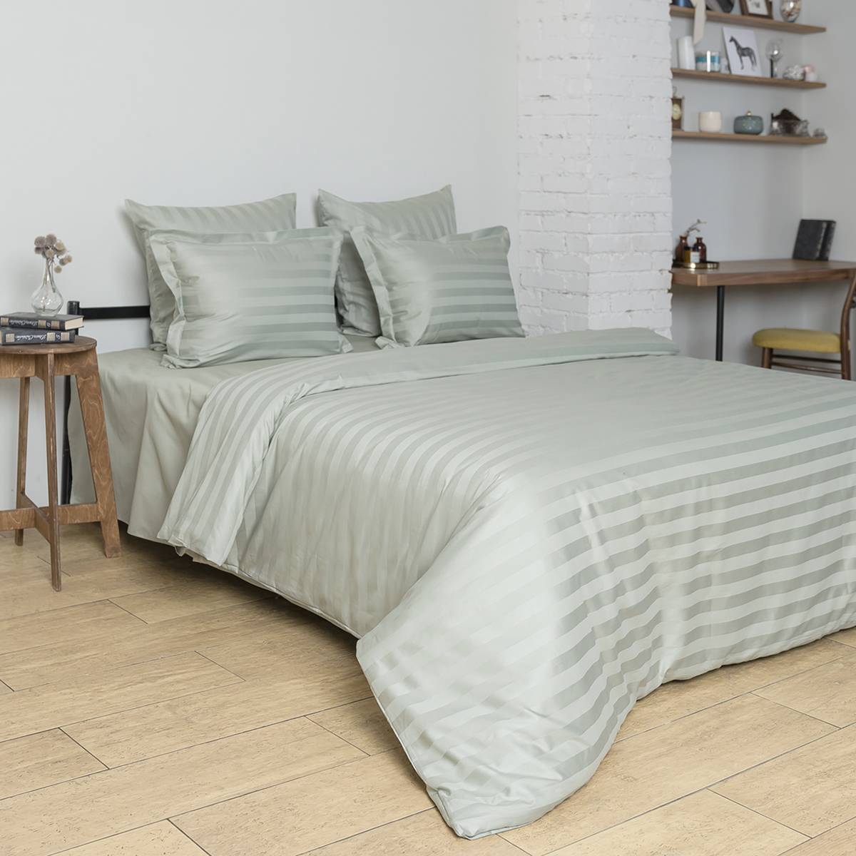 Однотонный стильный пододеяльник произведен из ткани страйп-сатин – 100% хлопок с жаккардовым рисунком в виде полос 3х3