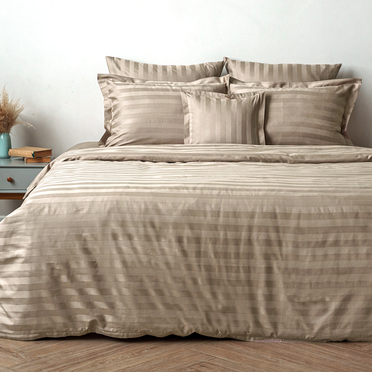 Однотонный стильный пододеяльник произведен из ткани страйп-сатин – 100% хлопок с жаккардовым рисунком в виде полос 3х3