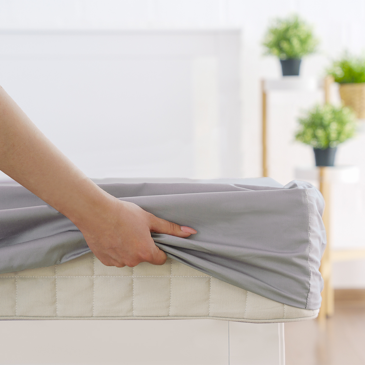 Детали: тонкая резинка по всему периметру простыни для плотной фиксации на матрасе.