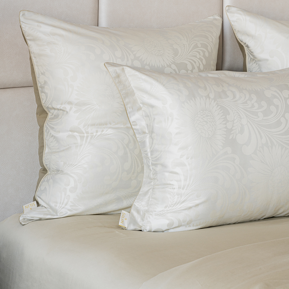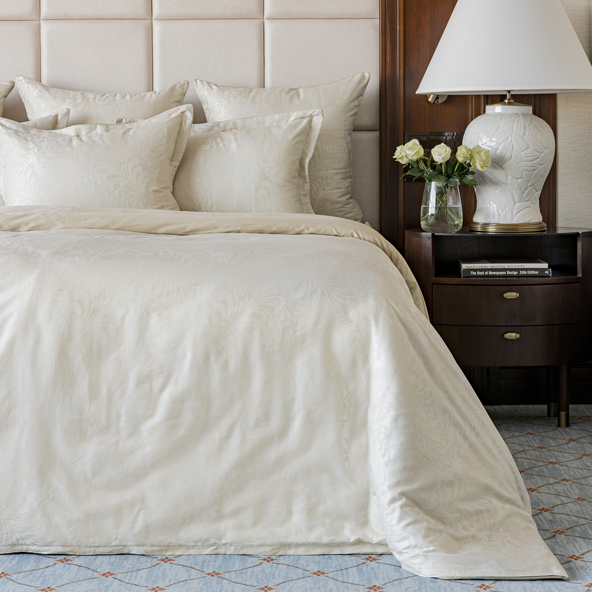 - Лицевая сторона наволочек и пододеяльника выполнена из жаккардовой ткани, оборотная из премиального длинноволокнистого хлопка сорта Пима