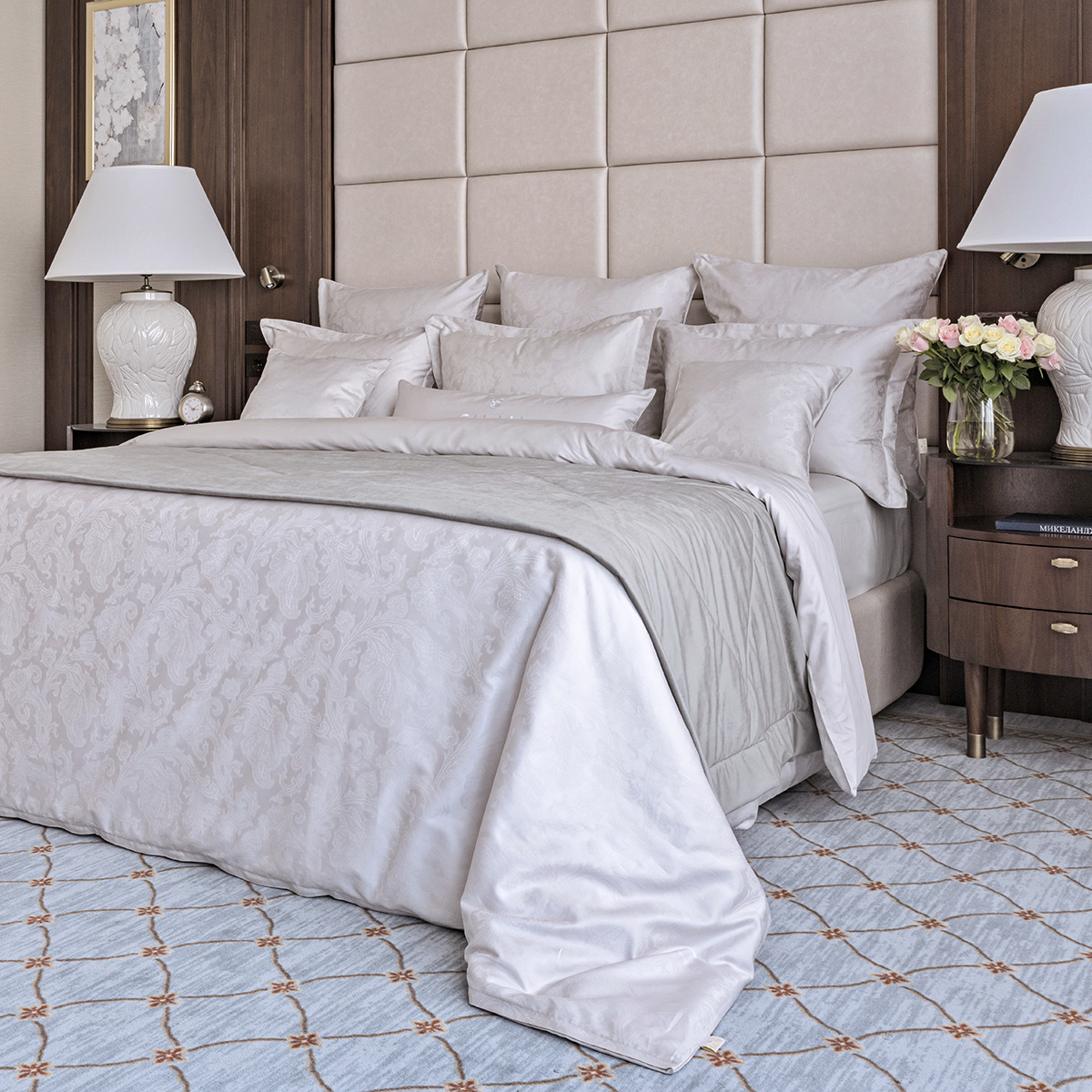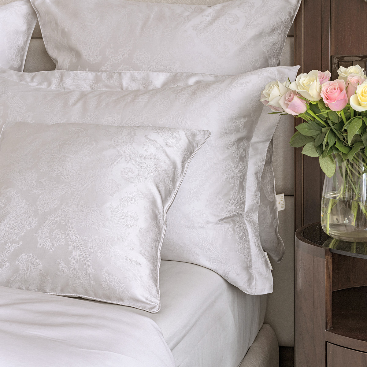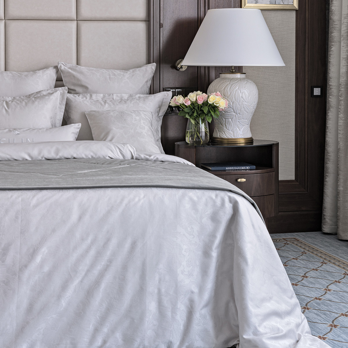 • Лицевая сторона наволочек и пододеяльника выполнена из роскошного жаккарда, оборотная из однотонного хлопка сорта Pima