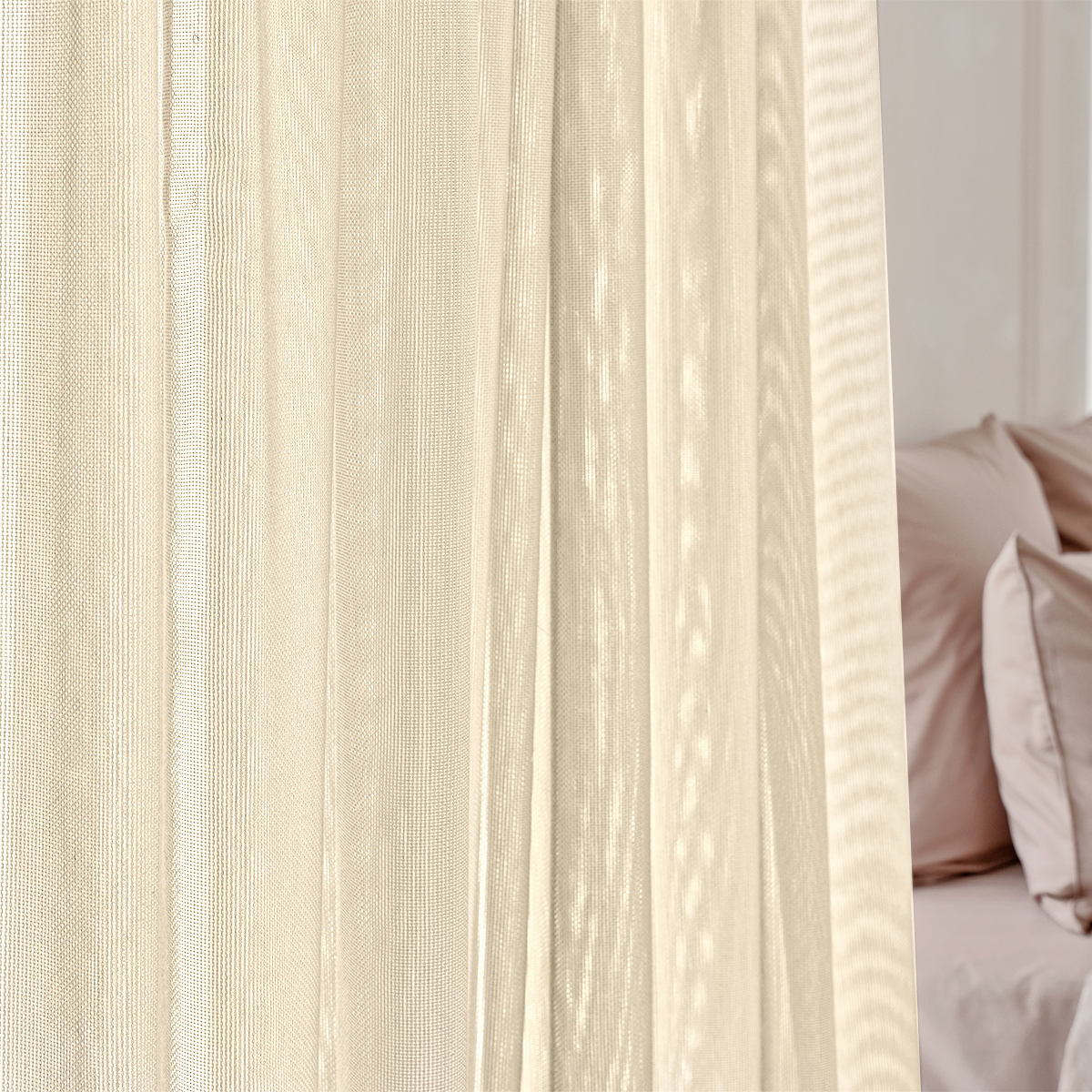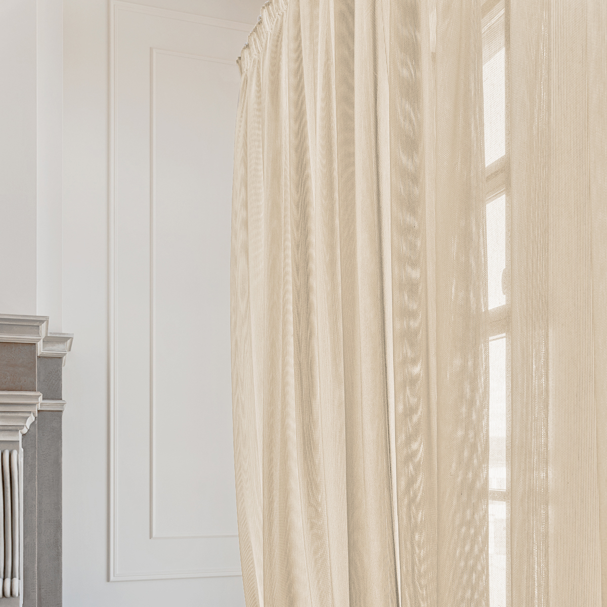 Легкая невесомая и в тоже время особо прочная, износостойкая ткань соткана в виде сетки. Натуральная фактура очень мягкая, приятная на ощупь. Прекрасно драпируется, может использоваться как самостоятельный декор окна.