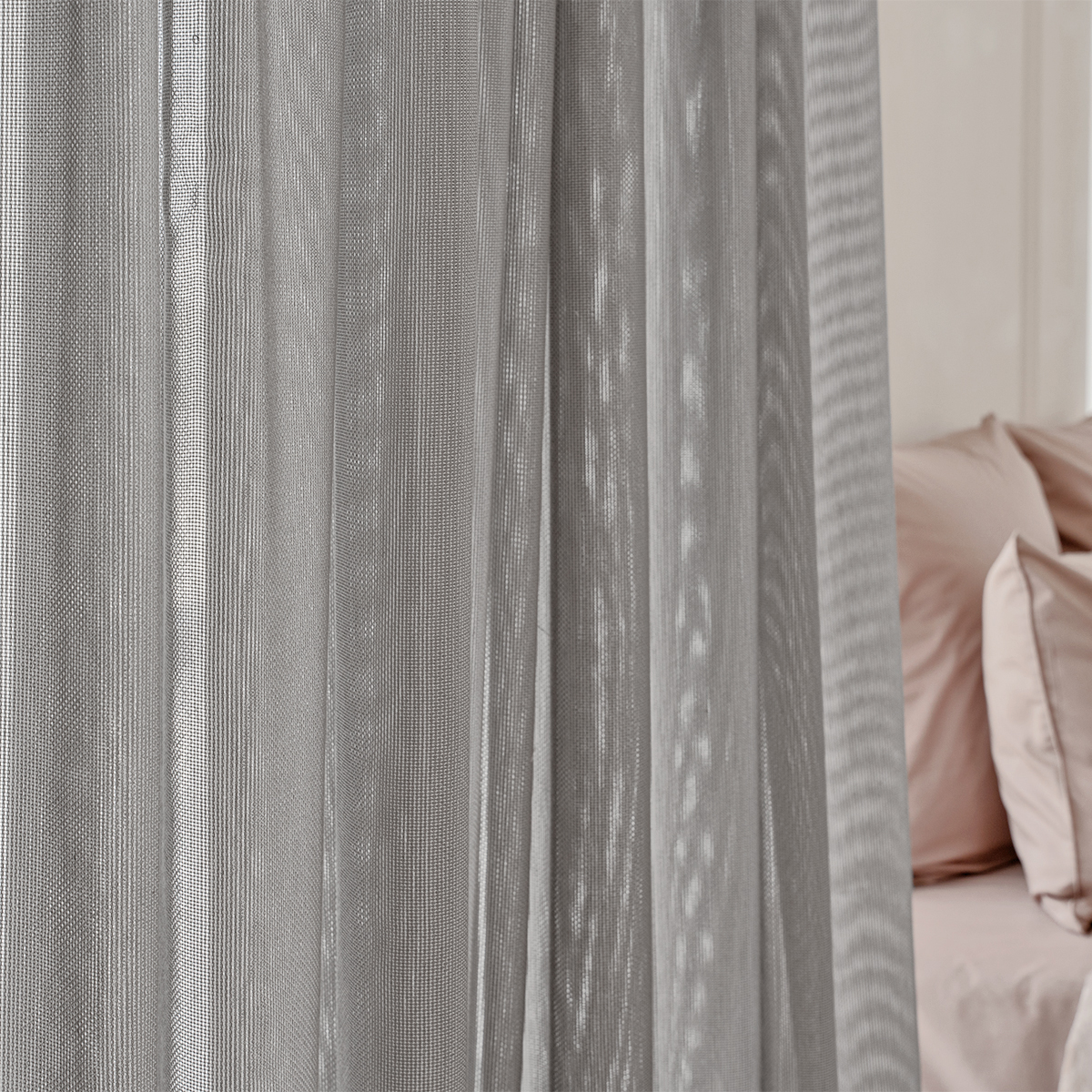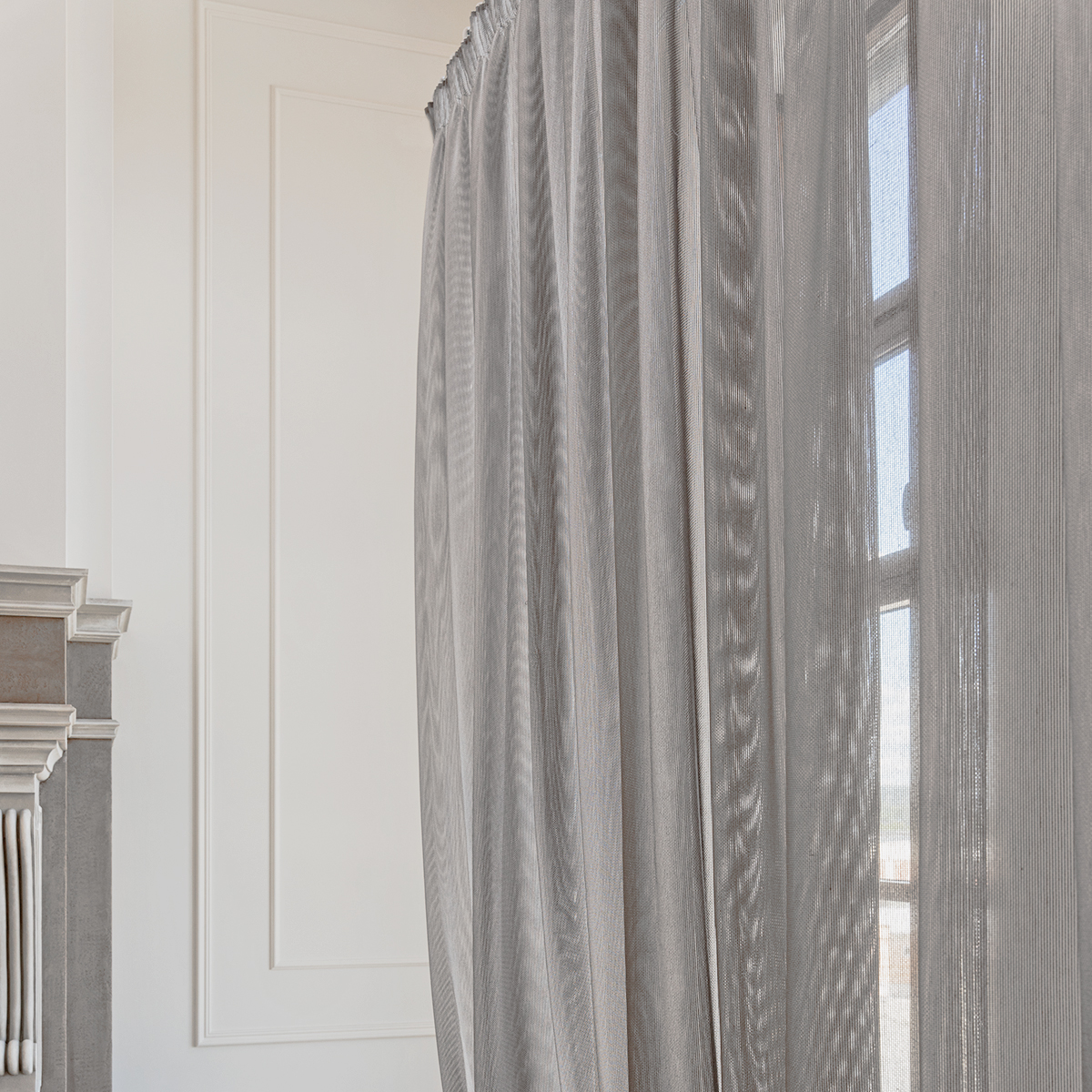 Легкая невесомая и в тоже время особо прочная, износостойкая ткань соткана в виде сетки. Натуральная фактура очень мягкая, приятная на ощупь. Прекрасно драпируется, может использоваться как самостоятельный декор окна.